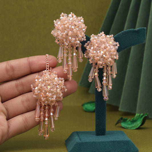 Peach Color Stone Earrings With Maang Tikka (MTKE479PCH)