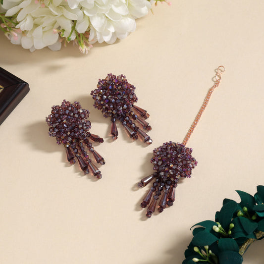 Purple Color Stone Earrings With Maang Tikka (MTKE479PRP)