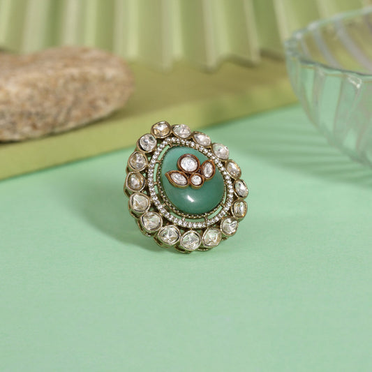 Pista Green Color Handmade Premium Quality Brass Metal Moissanite Stone Jaipur Finger Rings (ADR623PGRN)