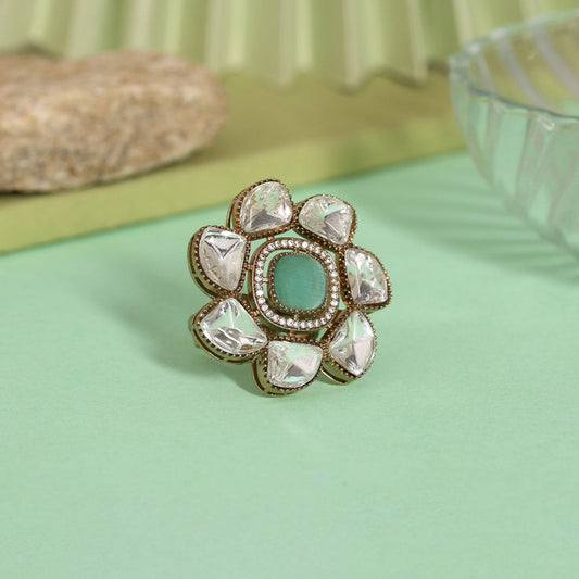 Pista Green Color Handmade Premium Quality Brass Metal Moissanite Stone Jaipur Finger Rings (ADR622PGRN)