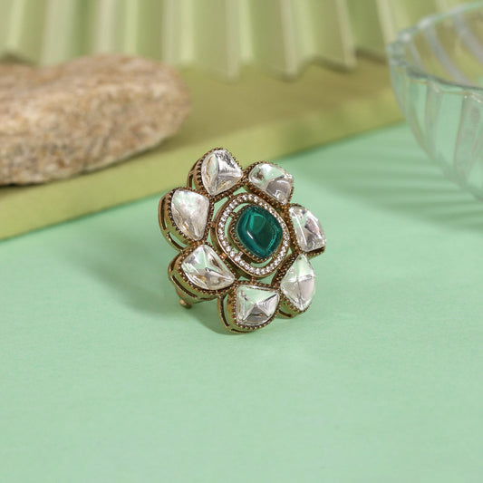 Green Color Handmade Premium Quality Brass Metal Moissanite Stone Jaipur Finger Rings (ADR623GRN)