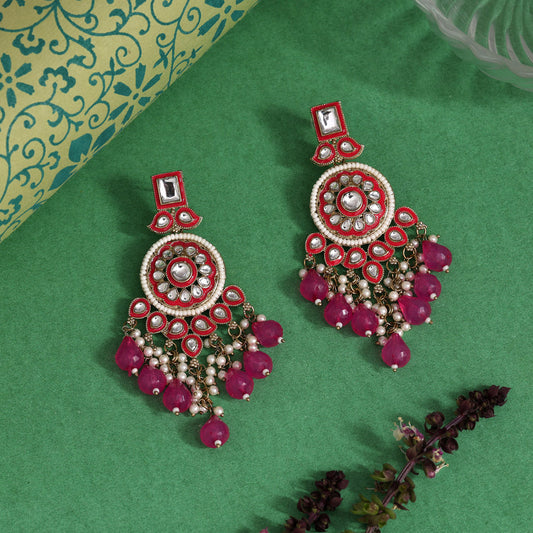 Rani Color Kundan Meenakari Earrings (MKE2016RNI)