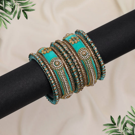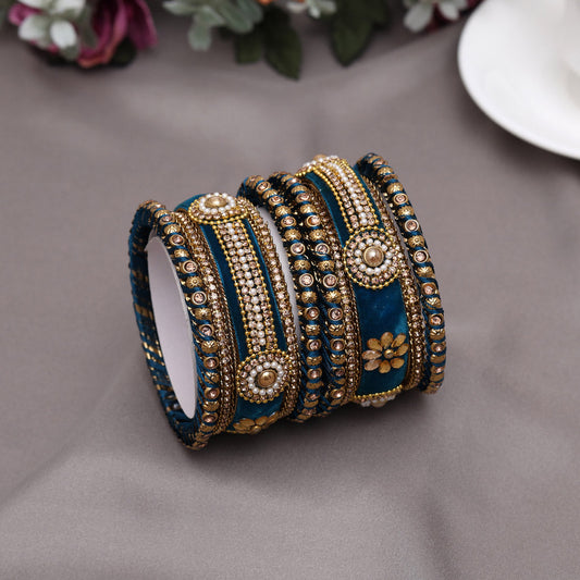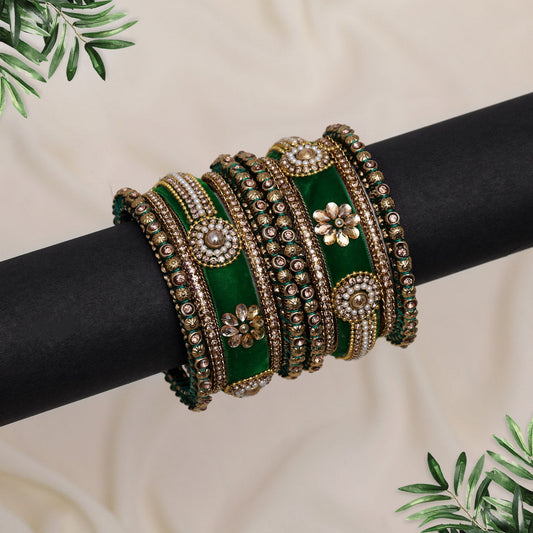 Rama Green Color Velvet Work Bangle Set: 2.8