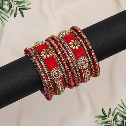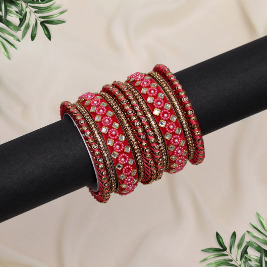 Dark Peach Color Velvet Thread Bangle Set: 2.10