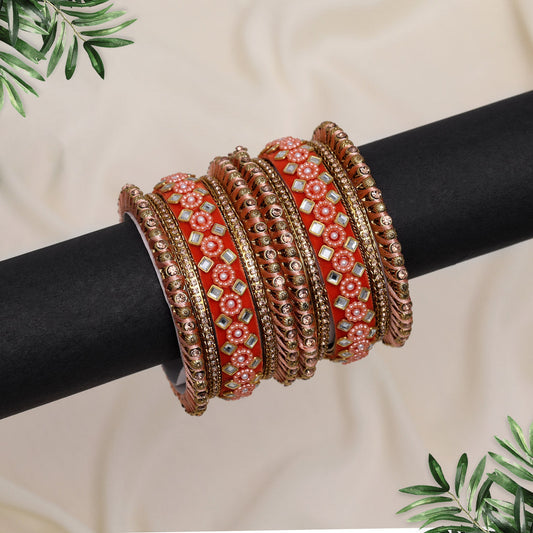 Dark Peach Color Velvet Thread Bangle Set: 2.12