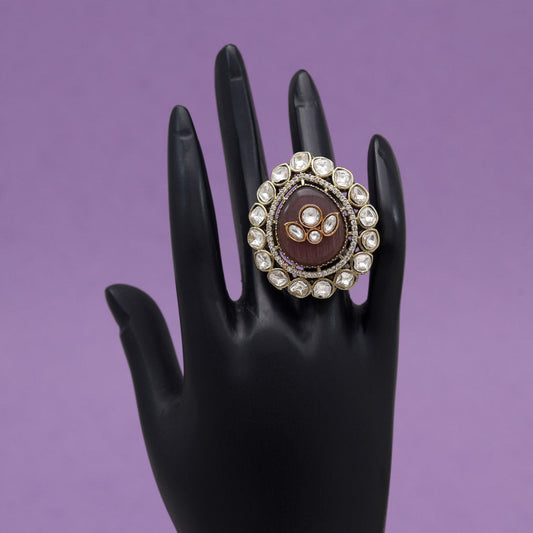 Maroon Color Handmade Premium Quality Brass Metal Moissanite Stone Jaipur Finger Rings (ADR623MRN)