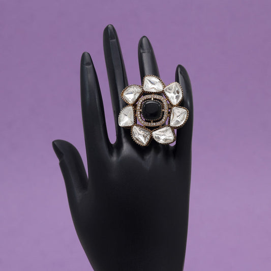 Black Color Handmade Premium Quality Brass Metal Moissanite Stone Jaipur Finger Rings (ADR623BLK)