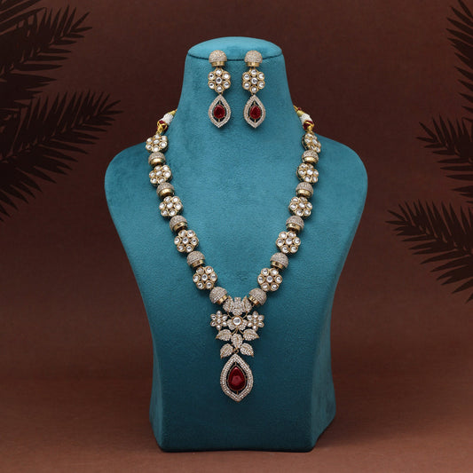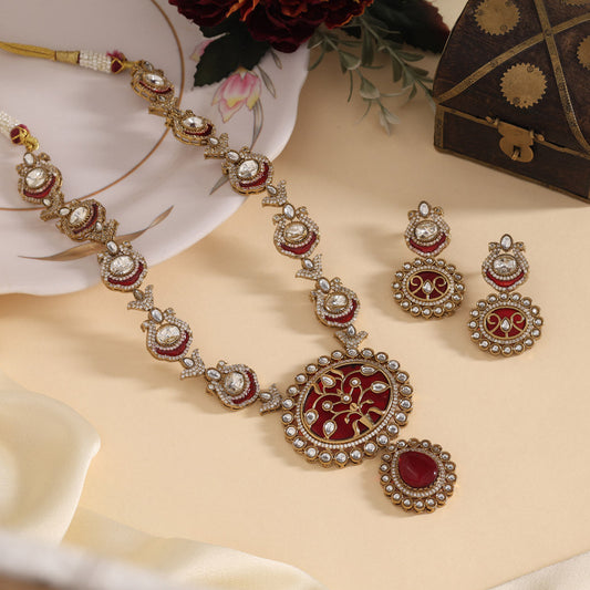 Maroon Color Premium Quality Moissanite Kundan Necklace Set (CZN1070MRN)