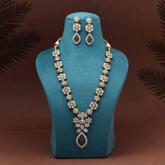 Purple Color Premium Quality Handmade In Jaipur Brass Ad & Monalisa Stone Necklace Set