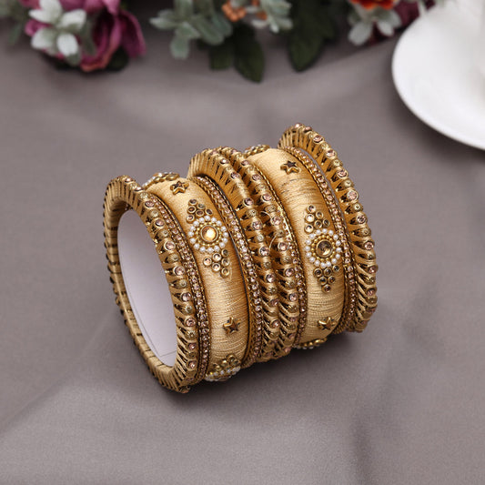 Mustard Yellow Color Thread Bangle Set: 2.12
