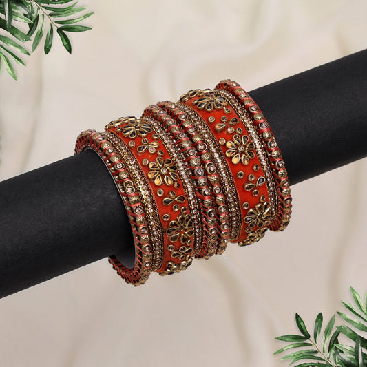 Dark Peach Color Velvet Work Bangle Set: 2.8