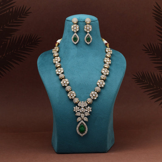Green Color Premium Quality Hasli Style Handmade Ad & Monalisa Stone Necklace Set (CZN1072GRN)