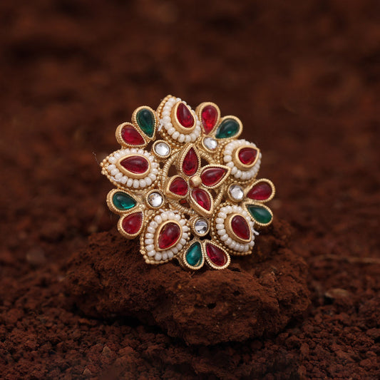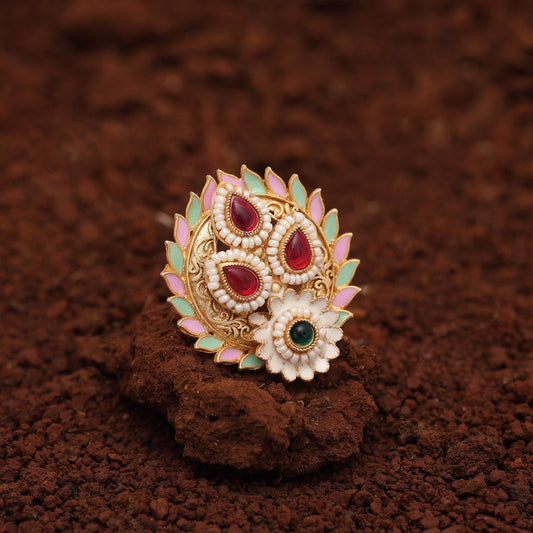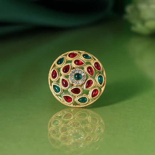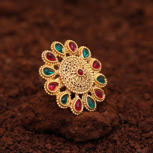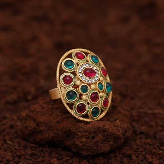 Assorted Color Meena Work 12 Pieces Of Matte Gold Finger Rings (MGR113CMB)