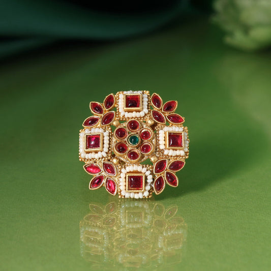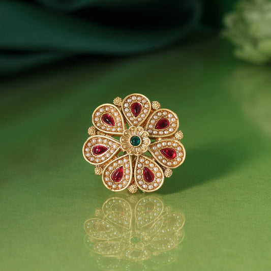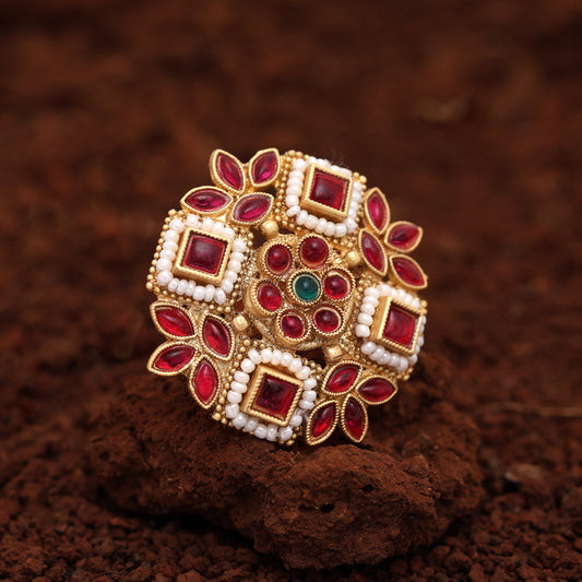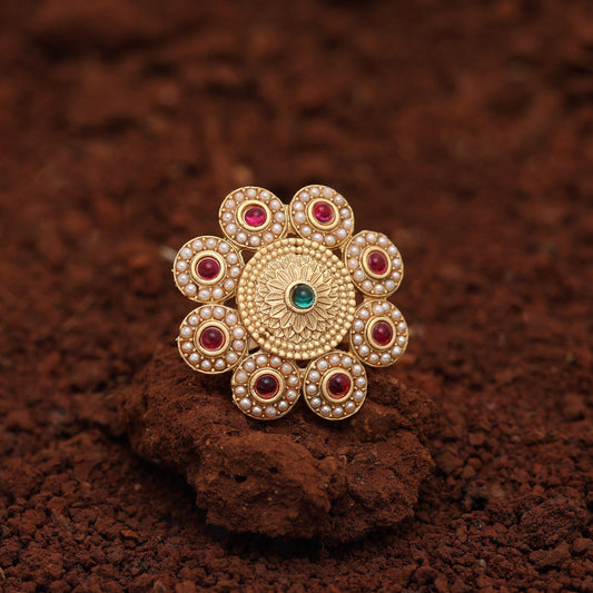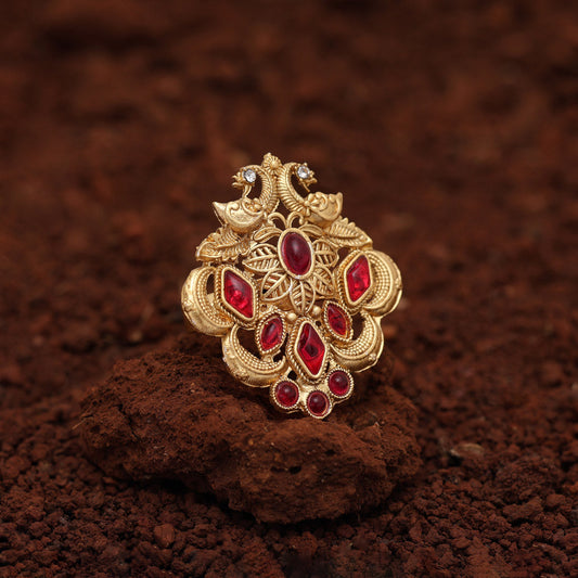 Rani Color Matte Gold Rajwadi Temple Necklace Set