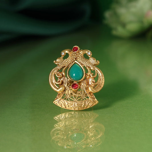 Green Color Matte Gold Rajwadi Temple Necklace Set (TPLN716GRN)
