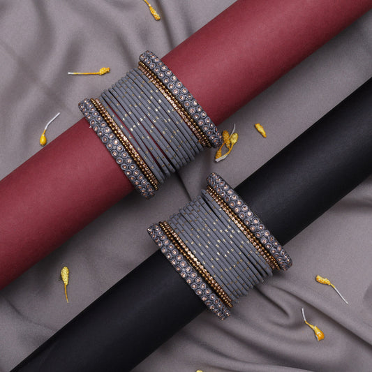 Dark Grey Color Fashion Bangle Set: 2.6 (TRB186DGRY-2.6)