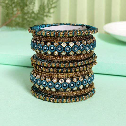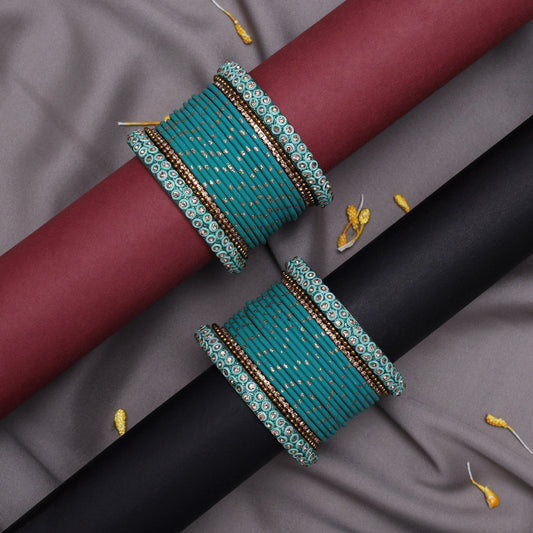 Rama Green Color Thread Bangle Set: 2.8