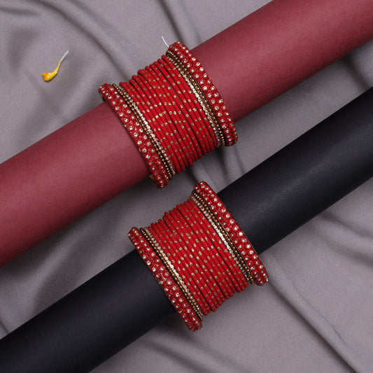 Red Color Fashion Bangle Set: 2.6 (TRB186RED-2.6)