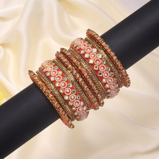 Dark Peach Color Thread Bangle Set: 2.4 (TRB187DPCH-2.4)