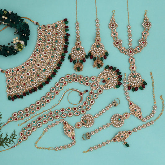 Maroon & Green Color Kundan Dulhan Set (BDL249MG)