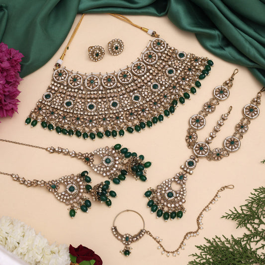 Green Color Kundan Dulhan Set (BDL249GRN)