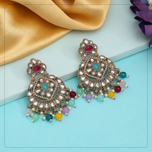 Multi Color Kundan Earrings (KDE1009MLT)
