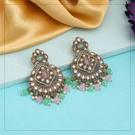Pink & Pista Green Color Kundan Earrings (KDE1009PNKPGRN)