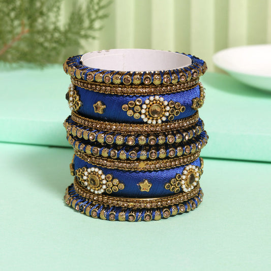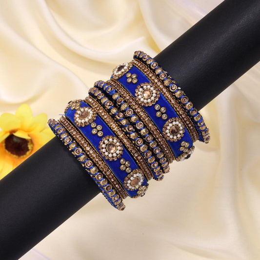 Blue Color Velvet Work Bangle Set: 2.6 (TRB180BLU-2.6)