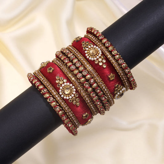 Maroon Color Thread Bangle Set: 2.8 (TRB179MRN-2.8)