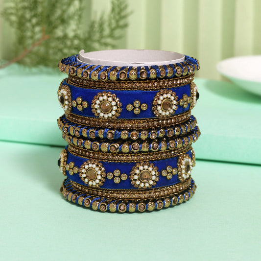 Blue Color Velvet Work Bangle Set: 2.4 (TRB180BLU-2.4)