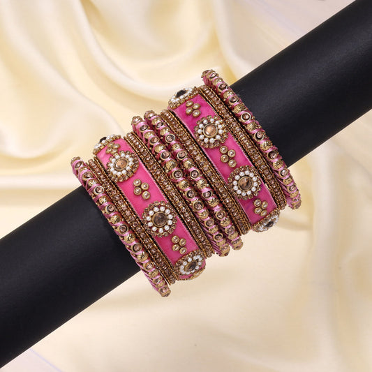 Pink Color Velvet Work Bangle Set: 2.6 (TRB180PNK-2.6)