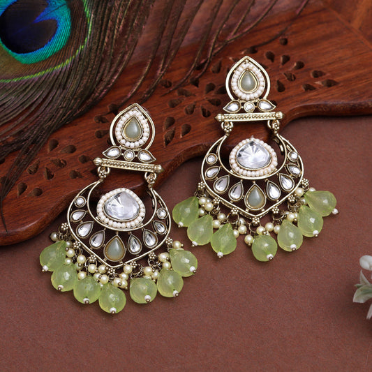 Pista Green Color Kundan Earrings (KDE1005PGRN)