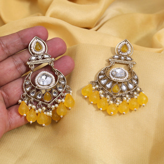 Yellow Color Kundan Earrings (KDE1005YLW)
