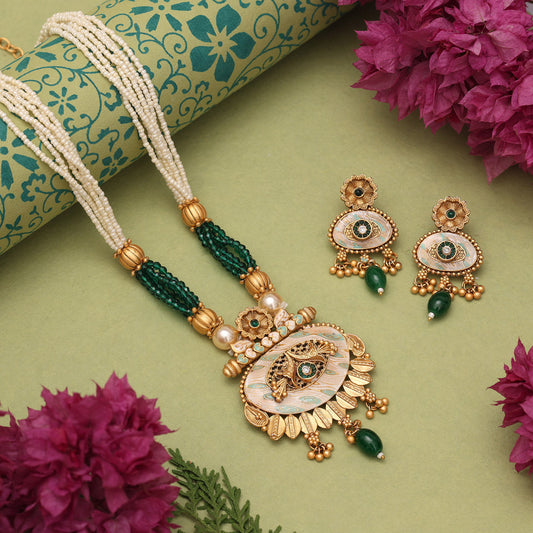 Green Color Matte Gold Meenakari Necklace Set (MKN607GRN)