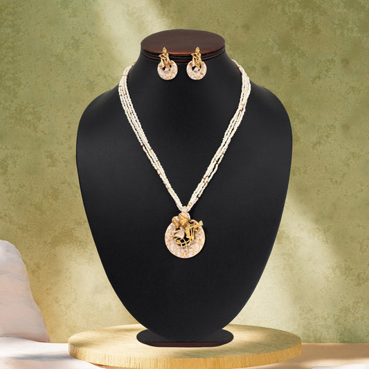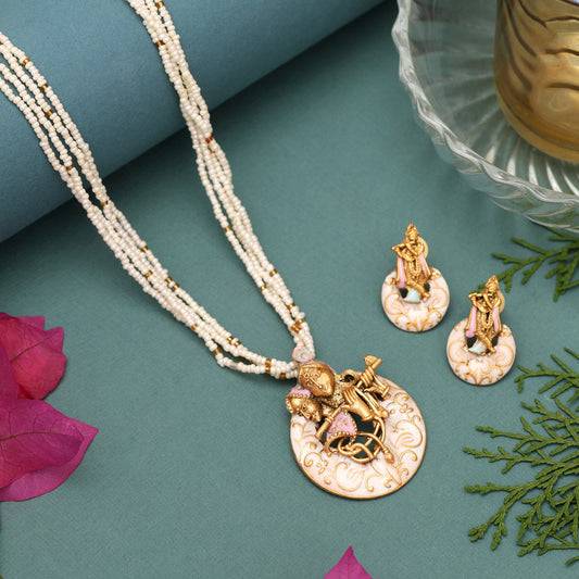 White Color Lord Radha Krishna Matte Gold Meenakari Necklace Set (MKN611WHT)