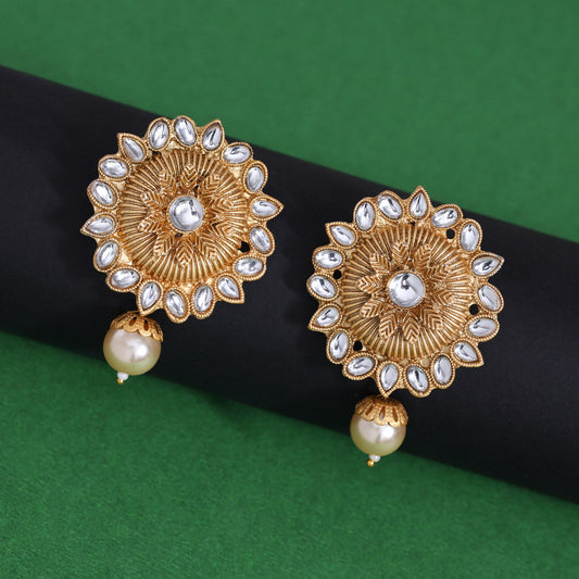 White Color Rajwadi Matte Gold Earrings (MGE310WHT)