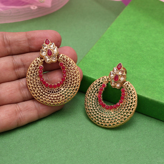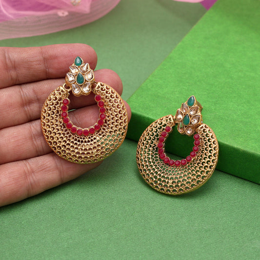 Rani Color Rajwadi Matte Gold Earrings (MGE313RNI)