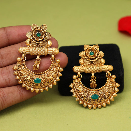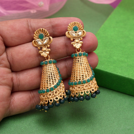 Green Color Rajwadi Matte Gold Earrings (MGE316GRN)