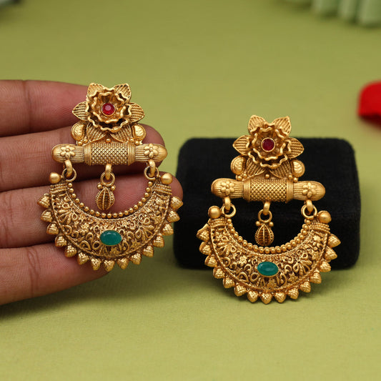 Gold Color Rajwadi Matte Gold Earrings (MGE316GLD)
