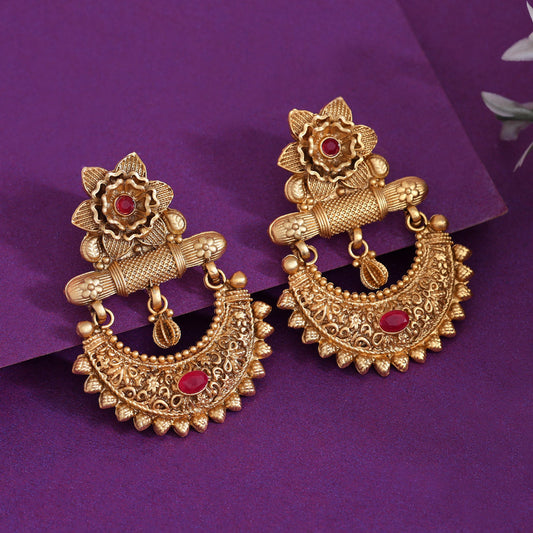 Gold Color Rajwadi Matte Gold Earrings (MGE315GLD)