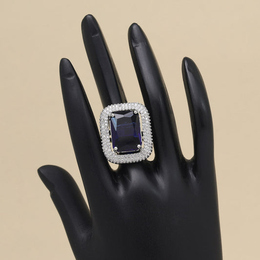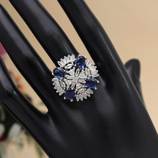 Blue Color American Diamond Finger Ring (ADR569BLU)
