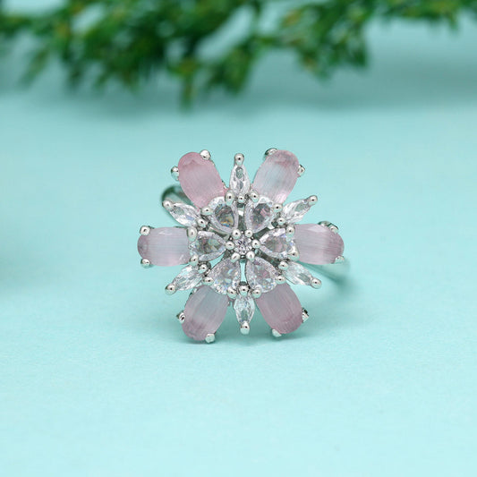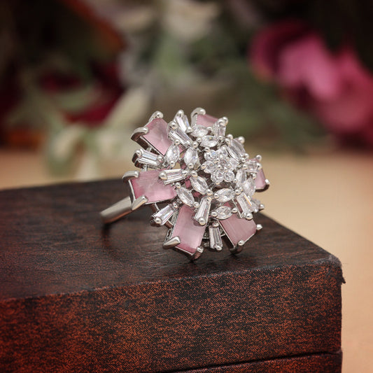 Pink Color American Diamond Finger Ring