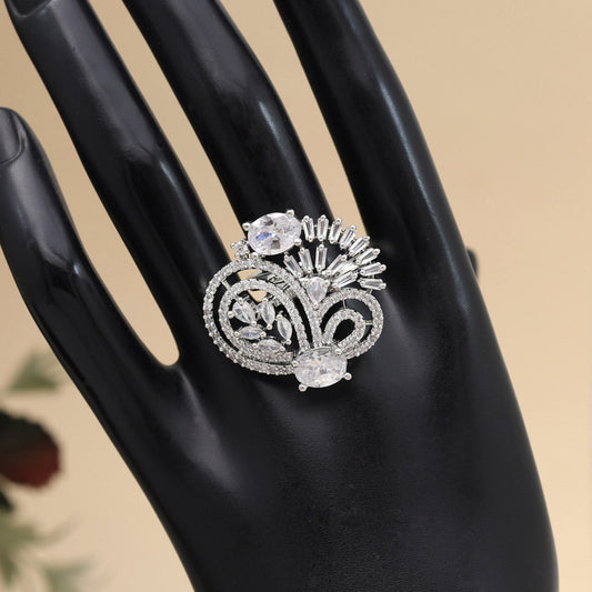 Silver Color American Diamond Finger Ring (ADR594SLV)
