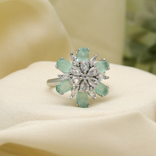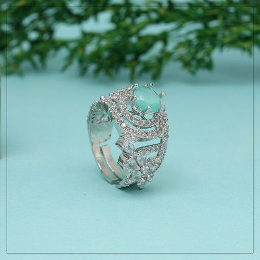 Green Color American Diamond Finger Ring