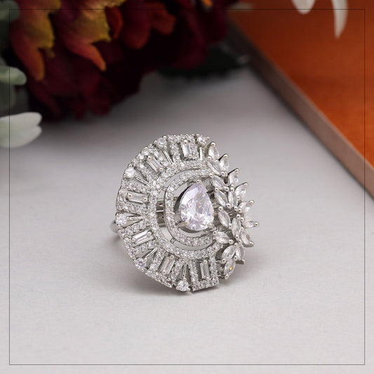 Silver Color American Diamond Finger Ring