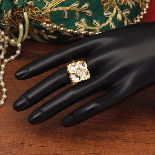 White Color Kundan Ring For Women (KDR120WHT)
