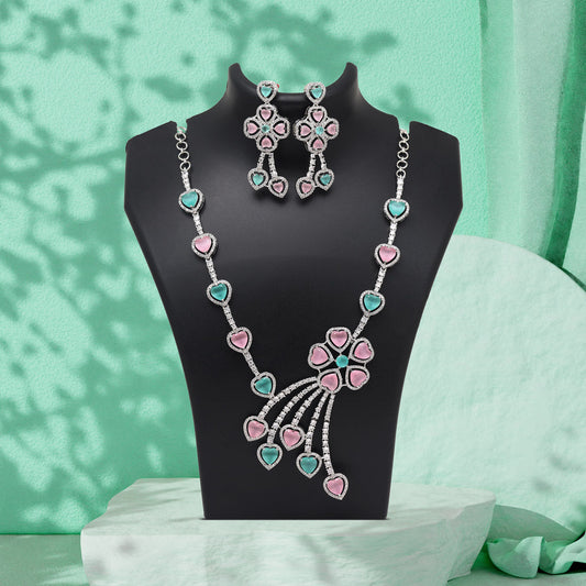 Silver Color American Diamond Necklaces Set (CZN1039SLV)