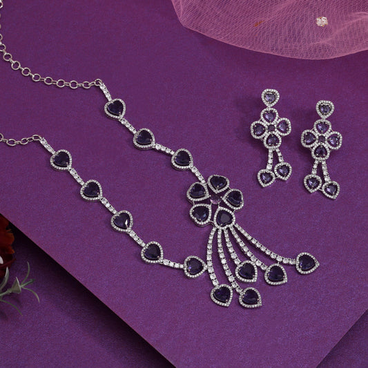 Purple Color American Diamond Necklaces Set (CZN1047PRP)