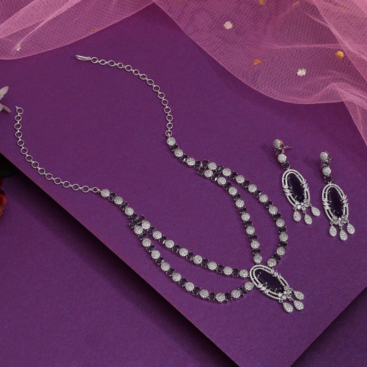 Purple Color American Diamond Necklaces Set (CZN1048PRP)