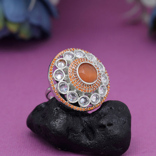 Orange Color American Diamond Finger Ring (ADR562ORG)